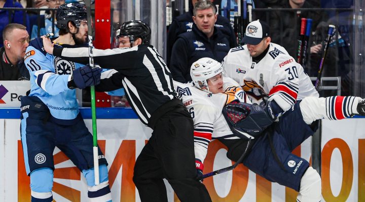 Голкипер «Металлурга» удален до конца матча с «Сибирью» за колющий удар клюшкой (видео)