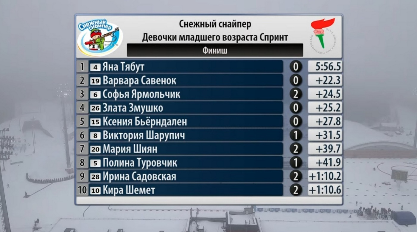 Ксения проиграла победительнице Яне Тябут из Витебской области 27,8 секунды. При этом занявшая 3-е место Софья Ярмольчик опередила дочь Домрачевой и Бьерндалена на 3,3 секунды, выигравшая серебро Варвара Савенок — на 5,5 секунды.
