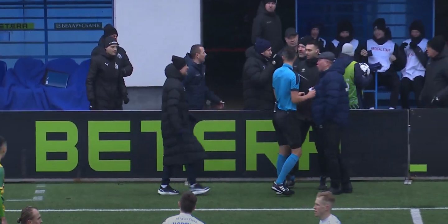В добавленное арбитром время главные тренеры команд вступили в перепалку. После падения в чужой штрафной защитника минчан Вадима Пигаса Вадим Скрипченко и Игорь Ковалевич поспорили на повышенных тонах.