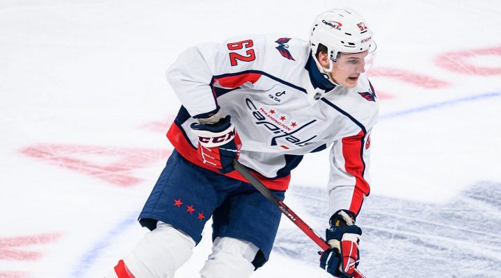 19-летний уроженец был заявлен в центре третьего звена «Вашингтона» со своим братом Алексеем и Томом Уилсоном. Но именно эта тройка вышла на стартовое вбрасывание.