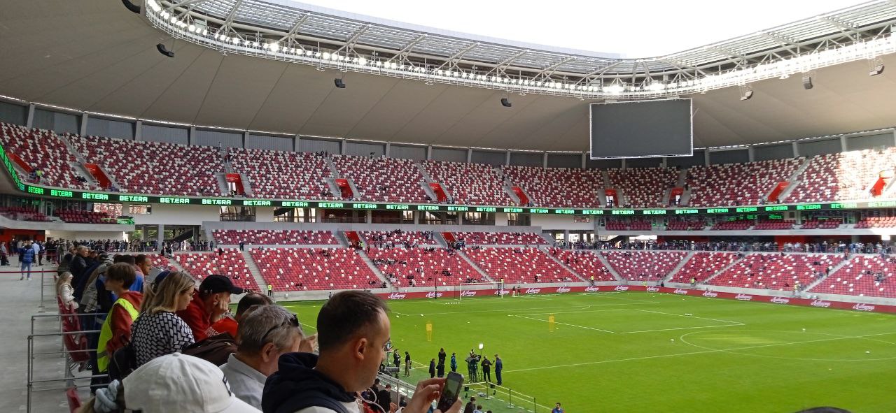 Товарищеским поединком сборных Беларуси и России продолжилось открытие самой большой спортивной арены страны. Корреспондент betnews.by поглядел на нее снаружи и внутри, оценив Национальный футбольный стадион.