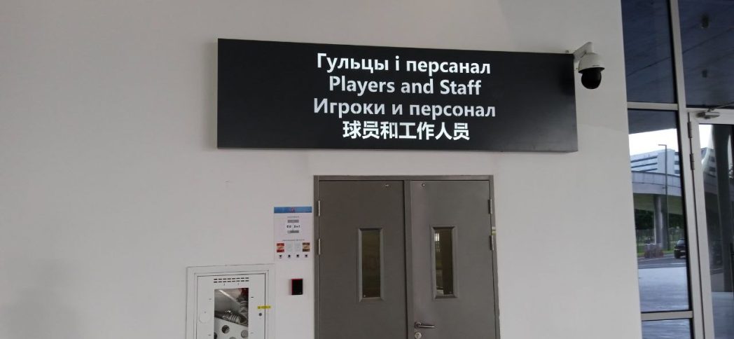 Кроме того, об этом указано на табличке с информацией об арене, которую не так-то и просто найти. Найдя, можно порадоваться тому, что информация на китайском и белорусском языках.