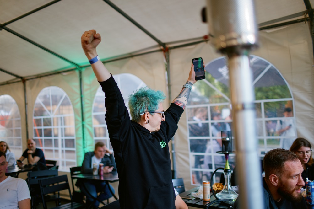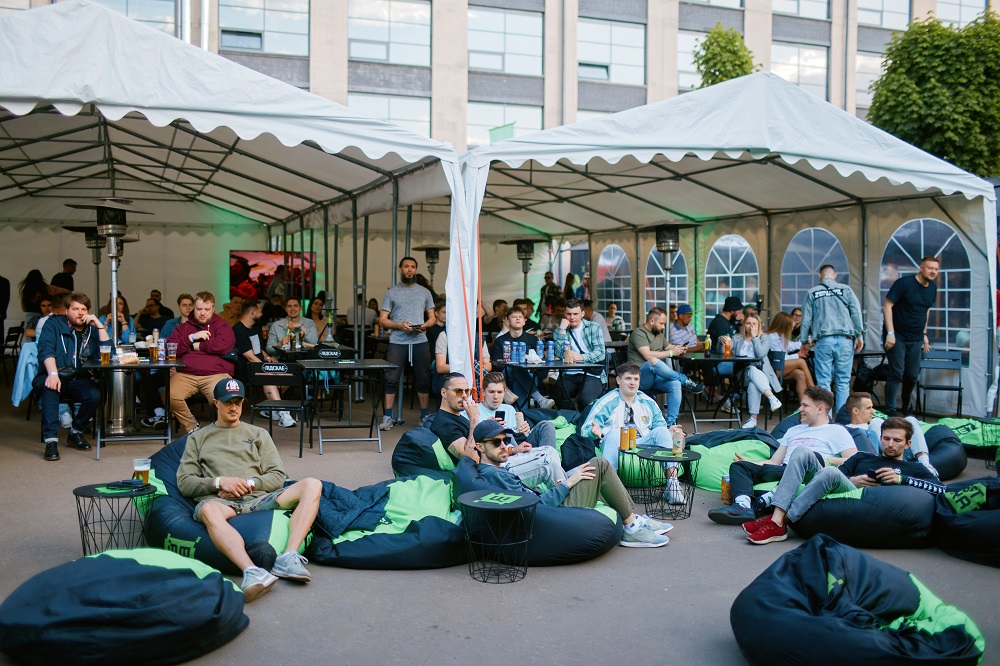 На входе можно было получить жетоны на фрисет — напиток и некое блюдо. Так что до матча была возможность получить вкусный бонус в одной из точек Lidbeer Dvor. Тут же фотографировались в фотобудке, играли в кикер или делали беспроигрышные ставки — приз в виде мерча все поставившие получили независимо от исхода. А разыгрывали здесь новый киберспортивный мерч.