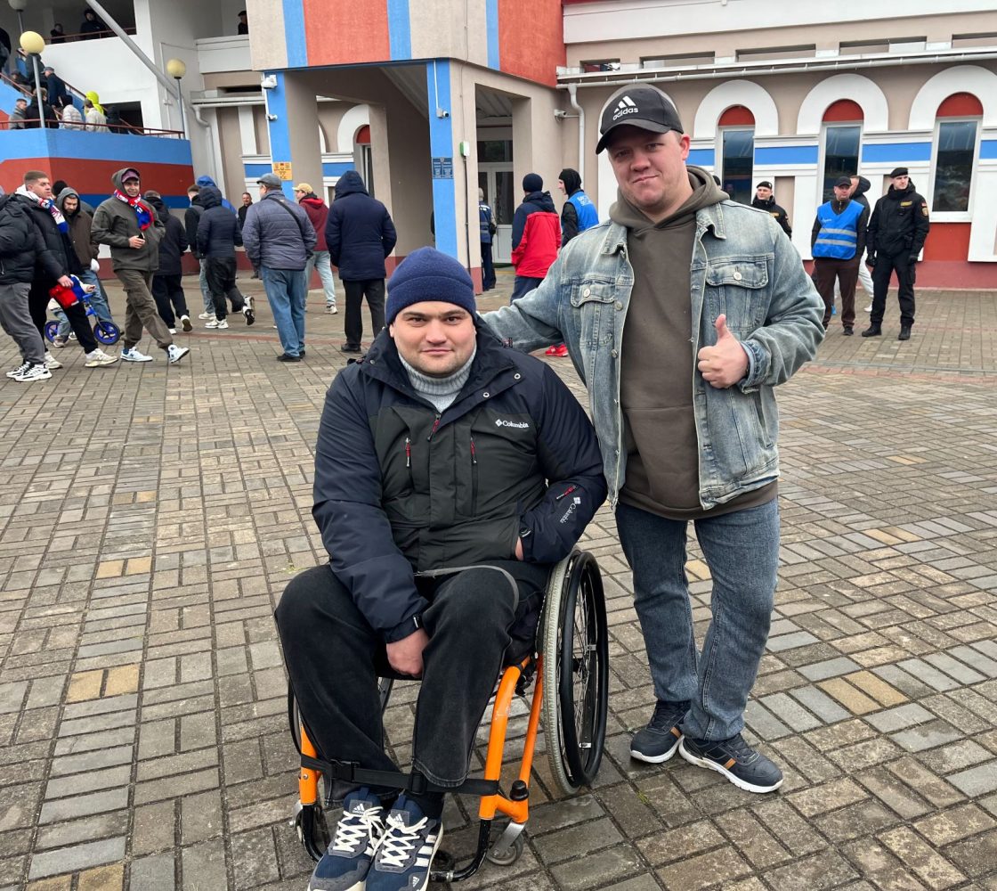 Инклюзивная среда тоже была создана, что нам подтвердили Максим и сопровождавший его друг Антон. Ребята — заядлые болельщики «Барановичей» и, конечно, не упустили возможности посетить такой матч.
