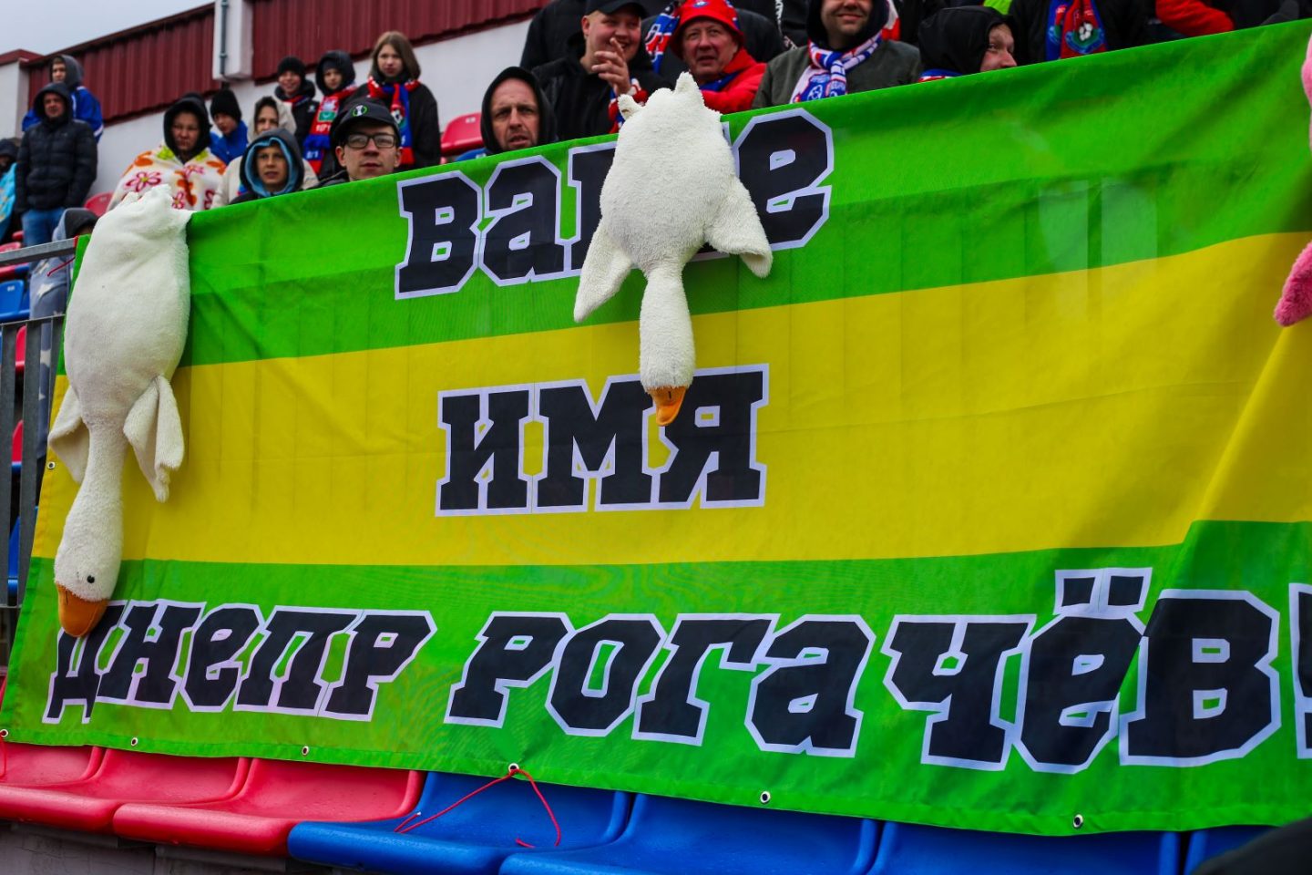 — У многих наших болельщиков есть дети, а у детей есть гуси. И вот благодаря нашим детям и болельщикам и родилась такая идея — повесить гусей на баннер, рассказывающий о традициях и истинных истоках команды «МЛ». Как-то так, — резюмировал преданный болельщик «Барановичей» Юрий.