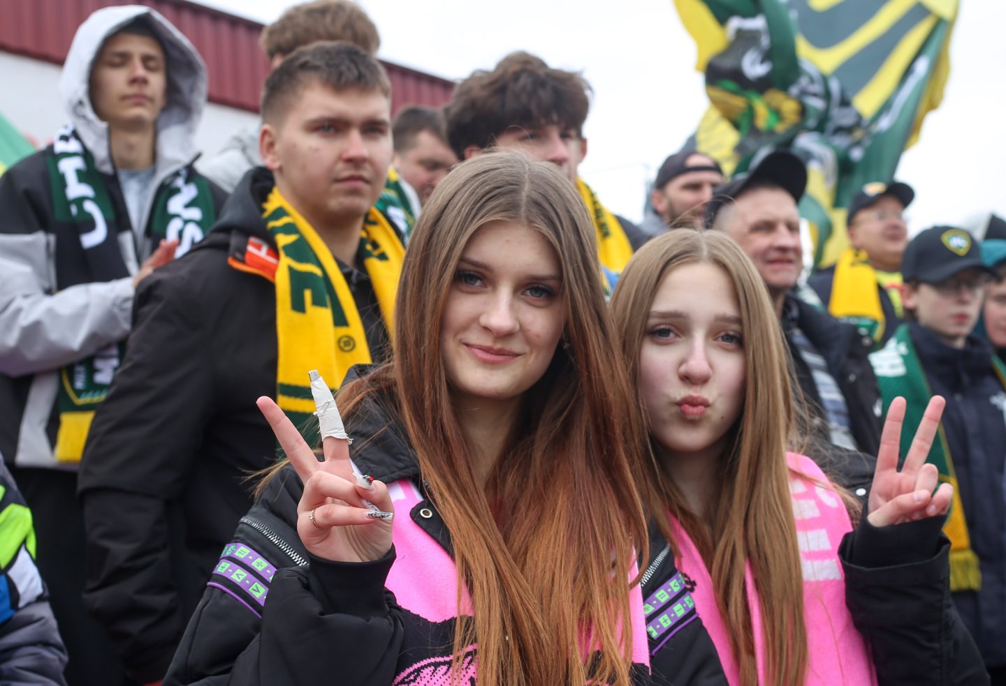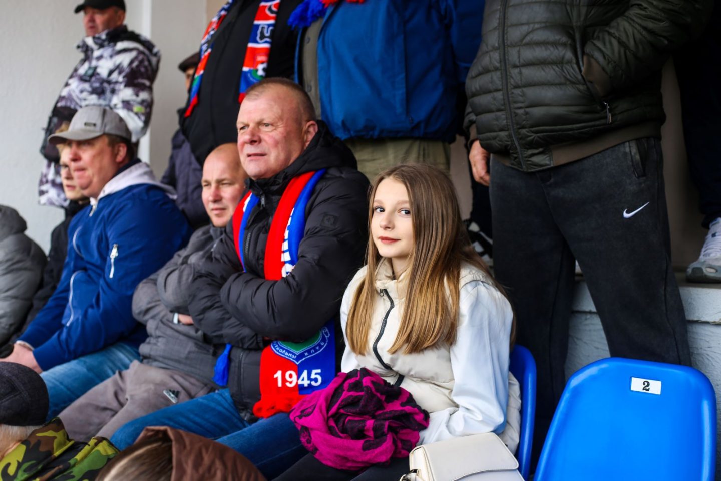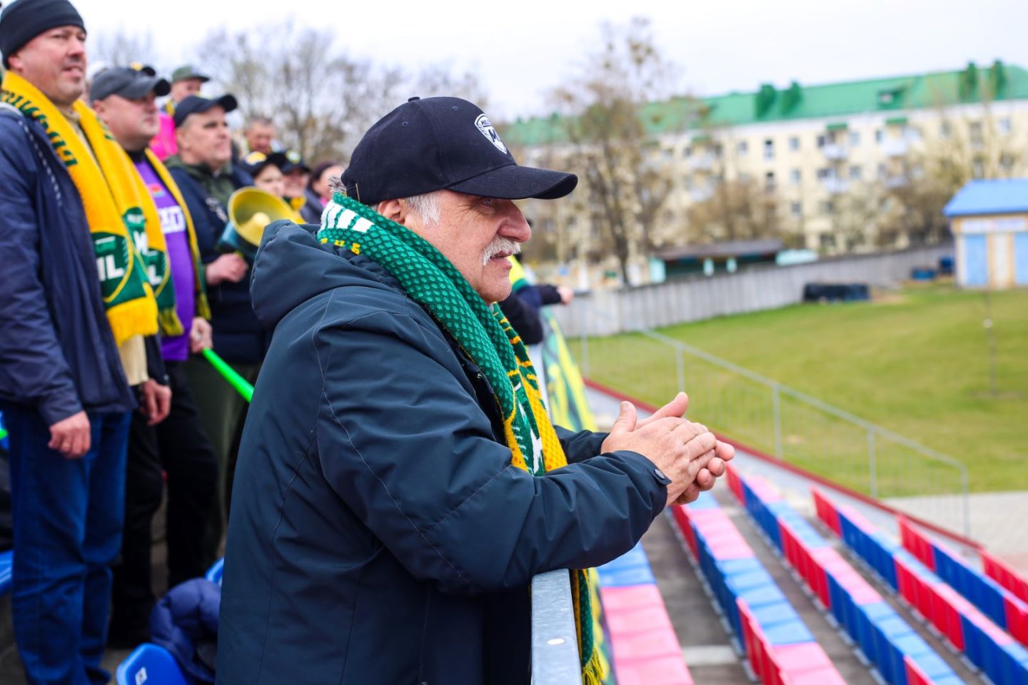 Там тоже было шумно. Приезжая торсида, вопреки баннерам их соперников, громко кричала: «Віцебчане, Віцебчане!» Особенно у них выделялся активный пожилой мужчина, представившийся Вячеславом Викторовичем.
