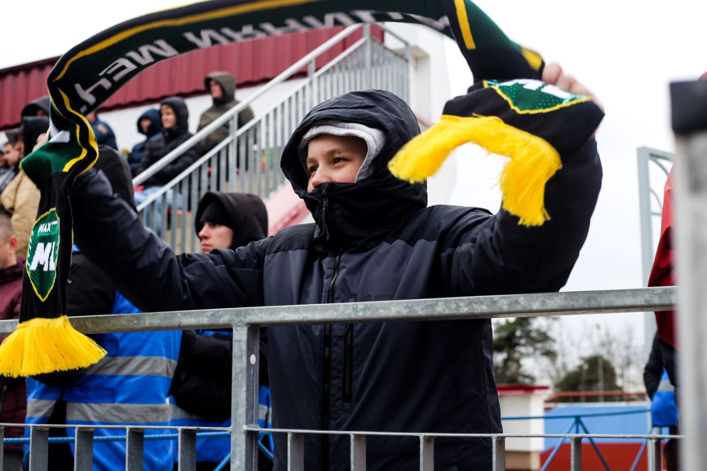 А к стадиону перед матчем в это время, кроме нас, шли разрозненные группы местных болельщиков, которых можно было узнать по шарфикам ФК «Барановичи».