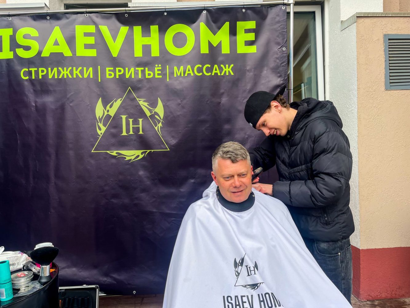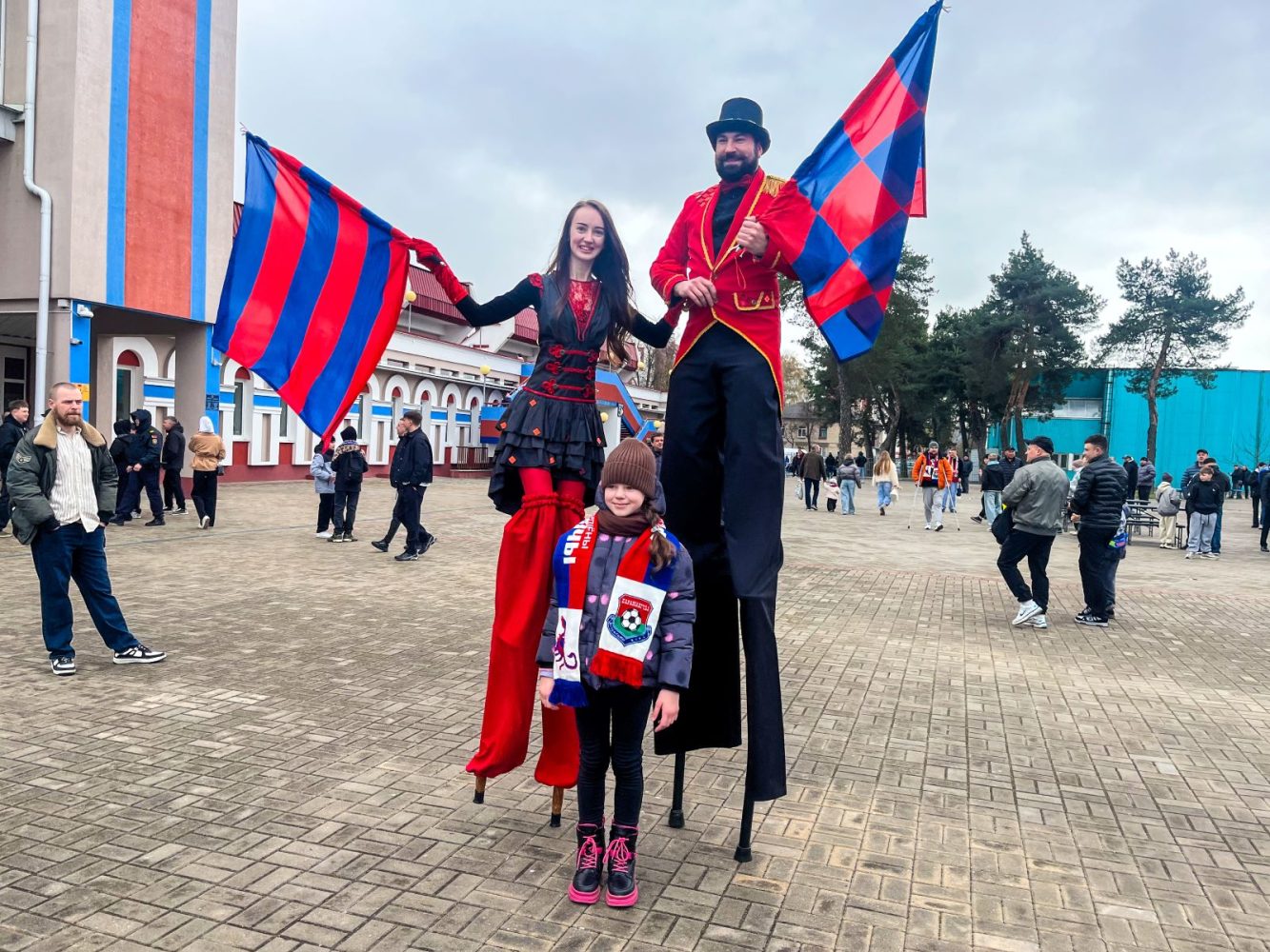 Уже на стадионе, подзарядившись кофе с шаурмой, мы увидели, что, кроме фастфуда, были придуманы и другие фишечки на радость людям — и акробаты на ходулях, и передвижной барбершоп…