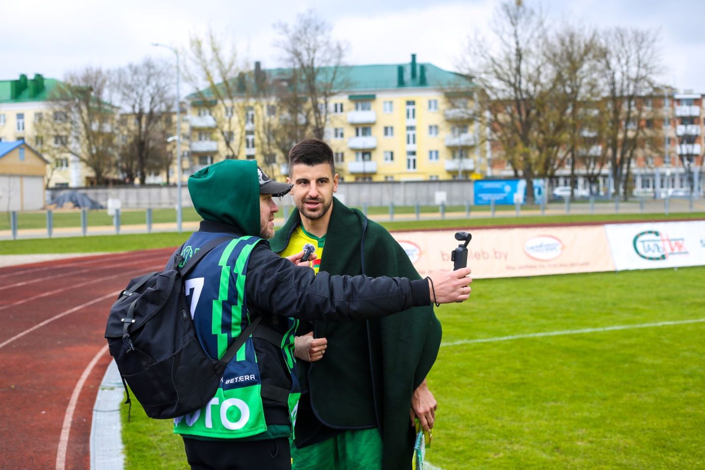 После финального свистка расстроенные игроки «Барановичей» под поддержку своих болельщиков удалились в раздевалку. А вот футболисты «МЛ» продолжали прогуливаться по полю, раздавая автографы и фоткаясь — как с местными жителями, так и со своими болельщиками. Футболист сборной Беларуси Руслан Лисакович лестно оценил и вайб стадиона, и команду: