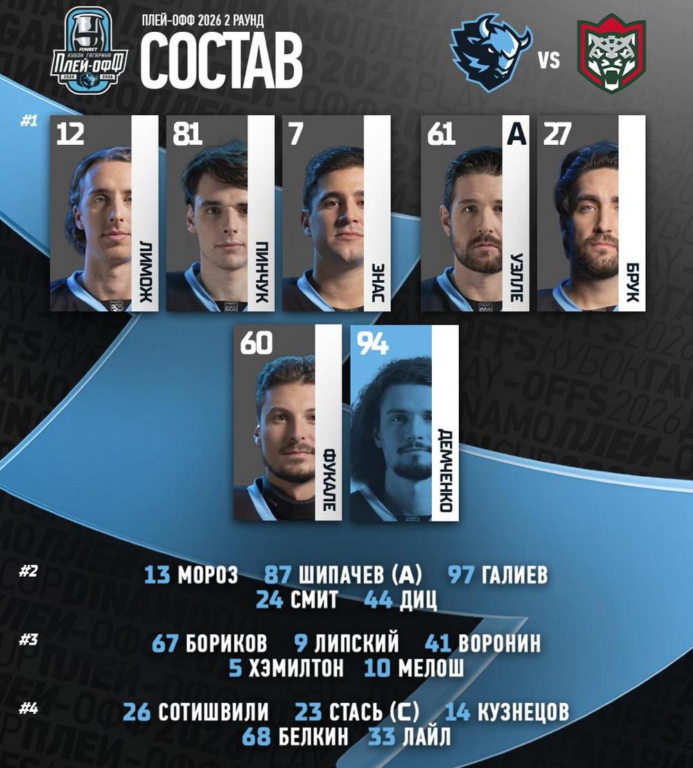 Спунер не доиграл первый матч по решению тренера. В 3 матчах текущего плей-офф КХЛ он не набрал ни одного очка. В заявке на вторую игру канадца заменил Кирилл Воронин. Кроме того, вернулся в состав «зубров» Даниил Сотишвили, который ранее был выведен из списка травмированных. Он заменил Илью Усова.
