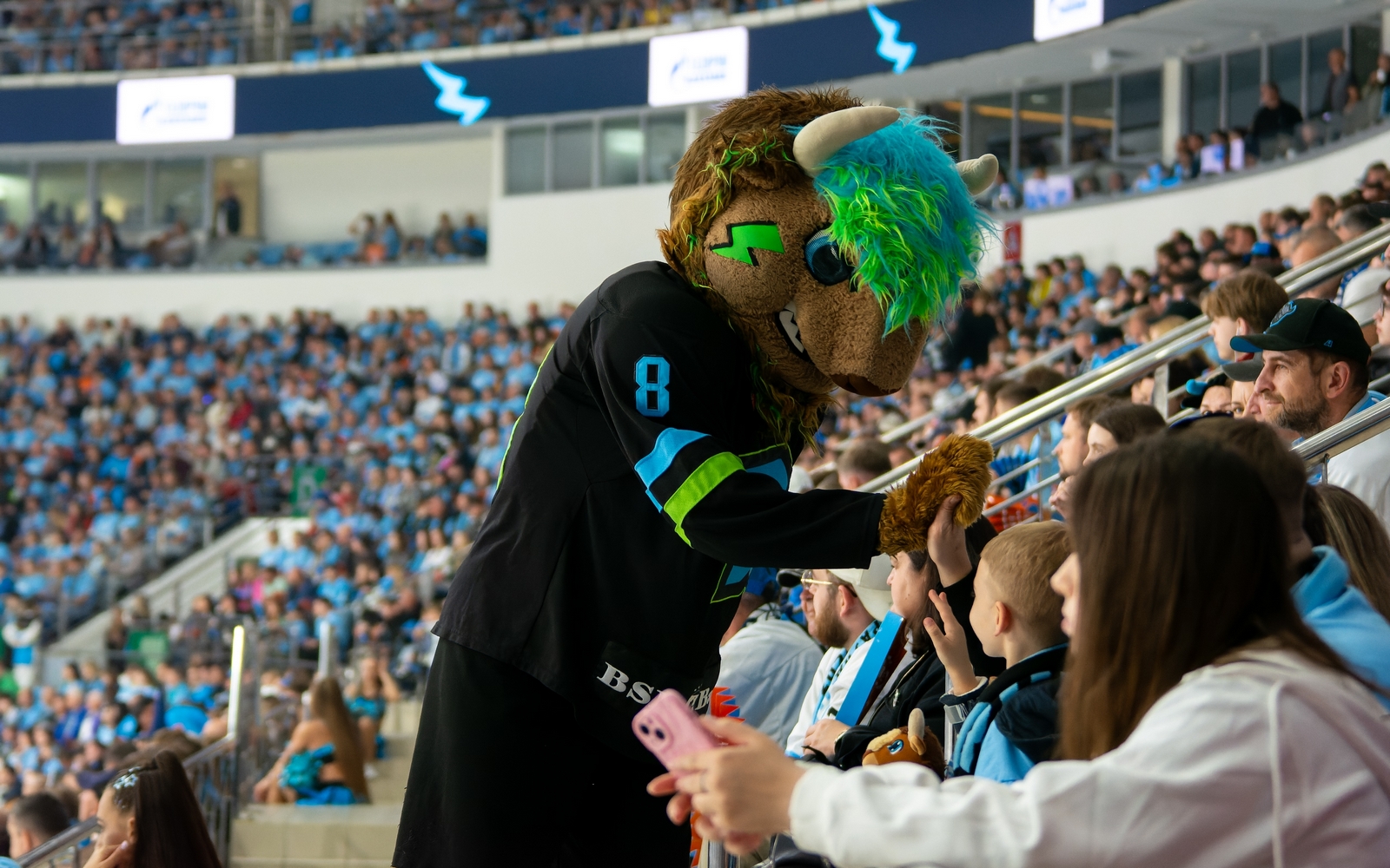 То, что домашняя премьера «зубров» пройдет при аншлаге, было понятно задолго до события. Если закрыть глаза на наличие нескольких пустых мест на вип-ярусе (тех самых, что оставались в продаже за 600 рублей за пару дней до матча), то на трибунах и вправду не было где упасть не то что яблоку — вишенке.