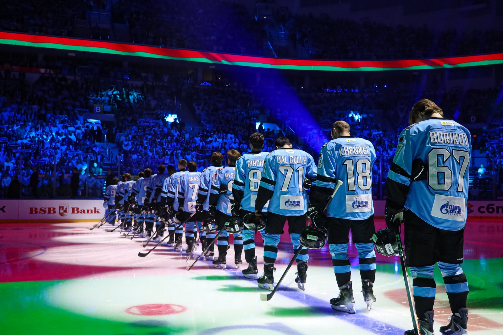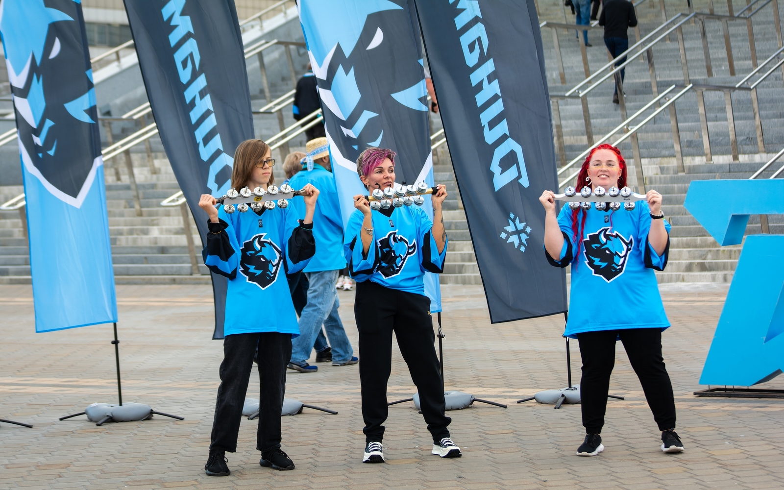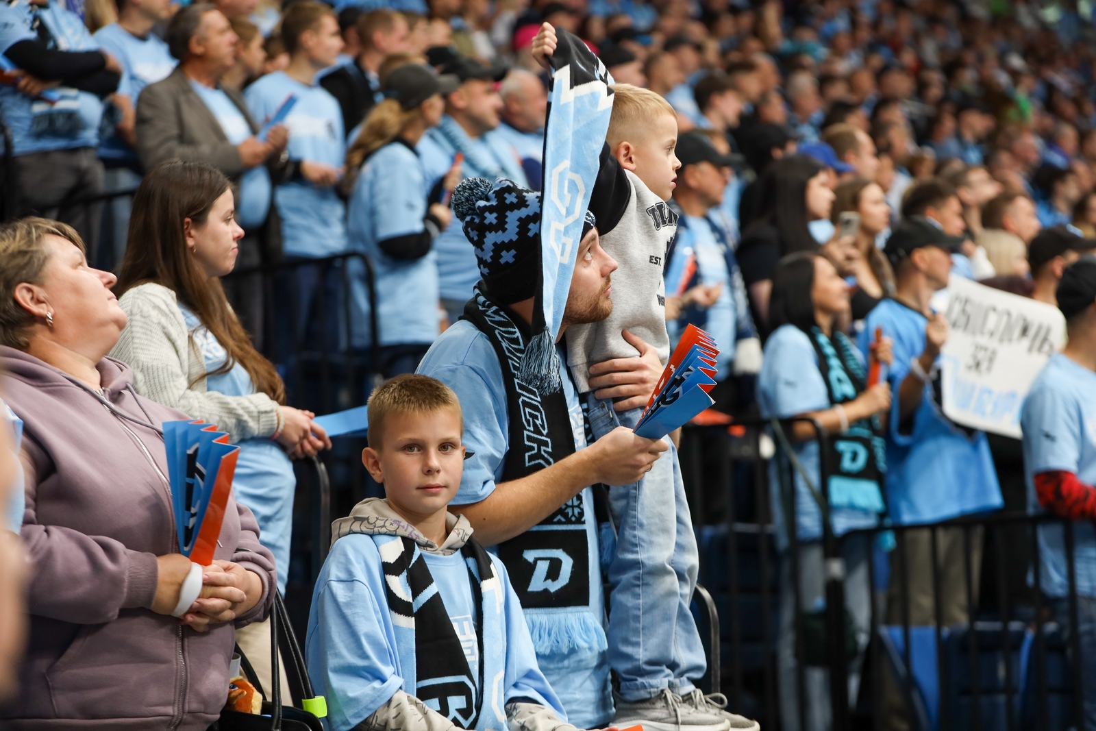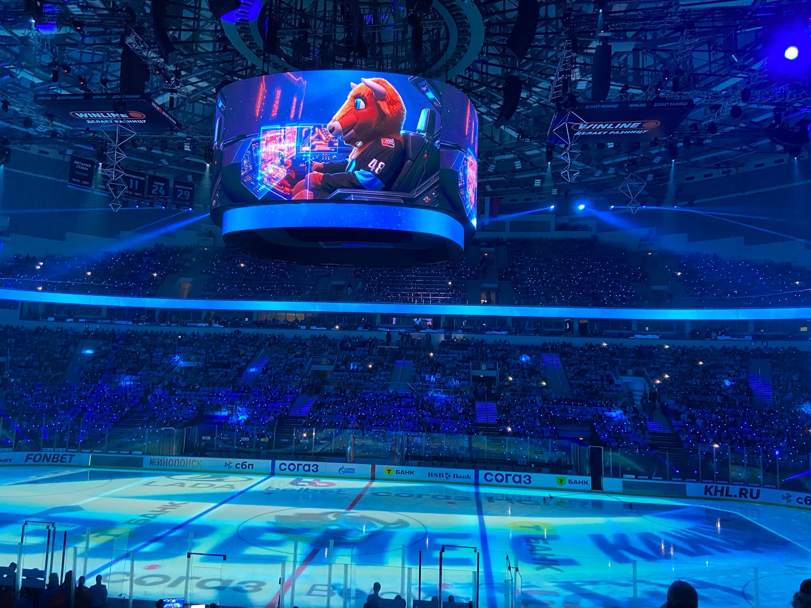 Каждый пришедший получил бонус в виде трех вещей — голубой майки с надписью «Больше хоккея», светящегося браслета, который зажигался автоматически и горел разными цветами, и бумажной трещотки, повышавшей градус поддержки. Впрочем, и без последнего атрибута народ ревел так, что барабанные перепонки не знали пощады.