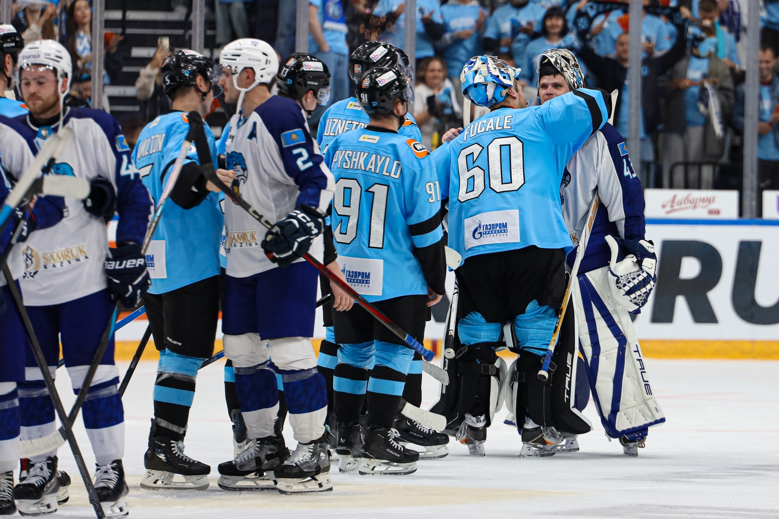 Самых бурных оваций удостоились Сэм Энас и Дмитрий Квартальнов. Американец — видимо, из-за того, что говорил по-русски. В конце спича Энас даже напел фрагмент культовой «Седой ночи». По иронии судьбы спустя пару часов именно 7-й номер инициировал запуск хита на всю арену, оформив «мгновенную смерть» для «Барыса» на 4-й минуте овертайма.