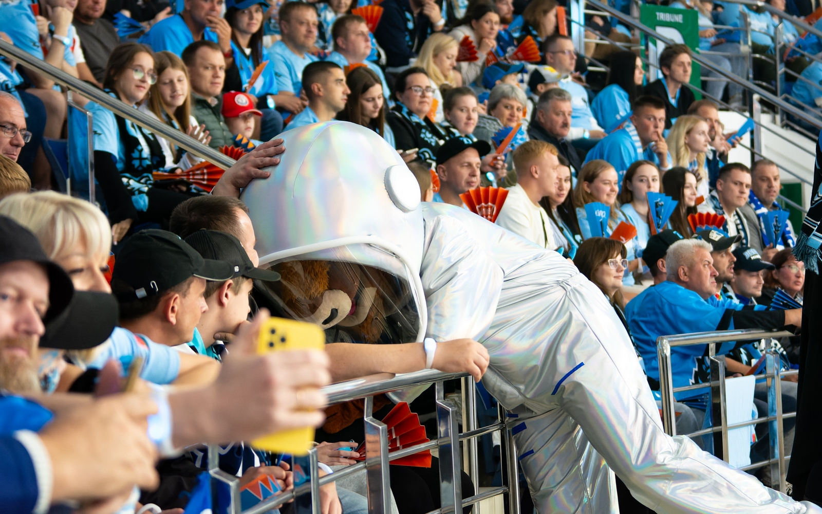 Ну а Зубрик потом бродил в скафандре по трибунам. В одной из коммерческих пауз он исполнил важную миссию, поздравив с днем рождения маму тренера «Динамо» Дмитрия Астапенко.