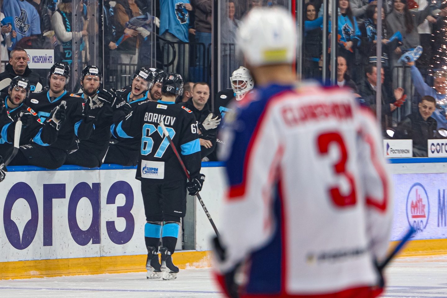 Хронику гостевой катастрофы уже на отсечке 1:45 разогнал Егор Бориков. На 12-минуте 19-летний белорусский нападающий оформил голевой дубль. Вторую шайбу Борика предварял результативный выстрел Сэма Энаса — так американец отметил возвращение в обойму после пропущенных из-за травмы обоих поединков в Москве. 3:0 — и на скамейку пить водичку и думать беспросветные думы отправился голкипер Иван Просветов. Но его сменщик Павел Хомченко еще до первого перерыва получил за плечи четвертую динамовскую плюху — от Роба Хэмилтона. Какое сумасшествие творилось в те мгновения на братавшихся, танцевавших и ополоумевших от счастья трибунных ярусах — пером не описать.